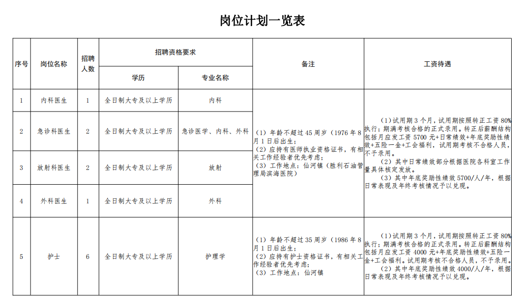 各岗位工资待遇详见《岗位计划一览表》。
